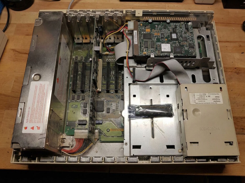They picked the NuBus expansion architecture. MIT developed this open standard. Third-party manufacturers could now create expansion cards. Graphics cards, networking solutions, specialized hardware for specific industries. An entire ecosystem sprang up. The traditional horizontal Mac case gave way to a tower-style design with room for internal hard drives and multiple NuBus cards.